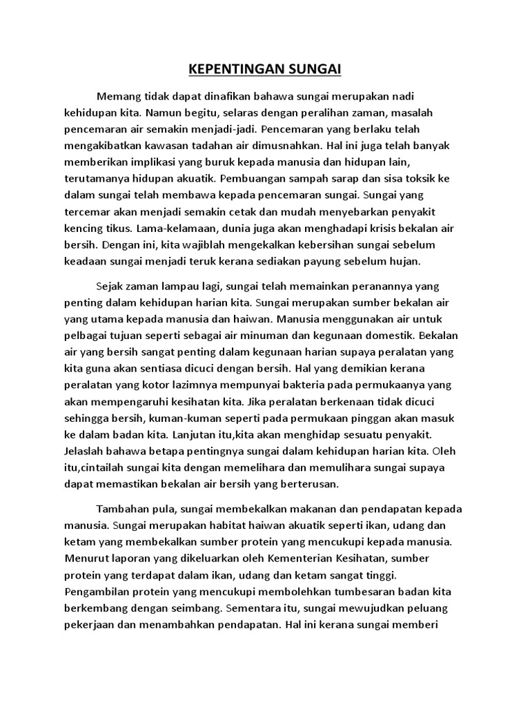 Kepentingan Sungai Docx Kepentingan Sungai Sungai Merupakan Anugerah Tuhan Kepada Manusia Sungai Sememangnya Amat Penting Dalam Kehidupan Kita Sejak Course Hero