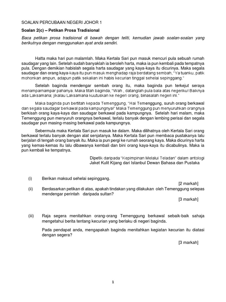 Baca Petikan Prosa Tradisional Di Bawah Dengan Teliti Kemudian Jawab Soalan Soalan Yang Berikutnya Dengan Menggunakan Ayat Anda Sendiri