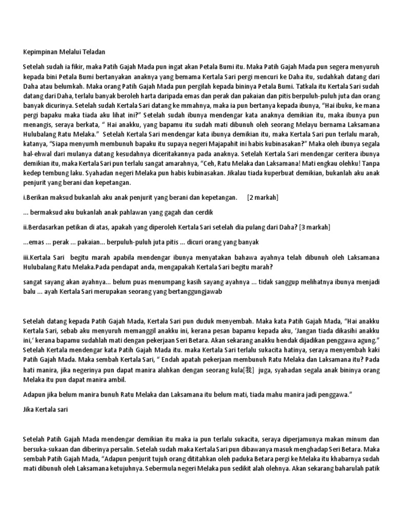 Prosa Tradisional Kepimpinan Melalui Teladan Tingkatan 4
