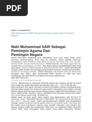 Nabi Muhammad Saw Sebagai Pemimpin Agama Dan Pemimpin Negara