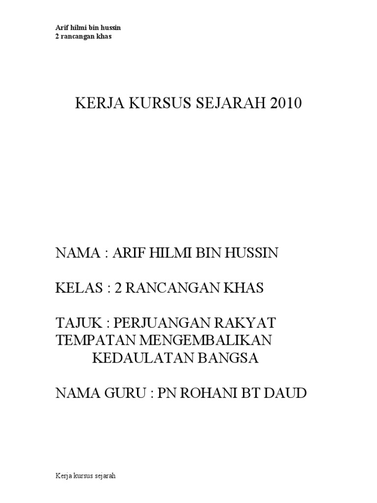 Kerja Kursus Sejarah Stpm Penggal 2 2016