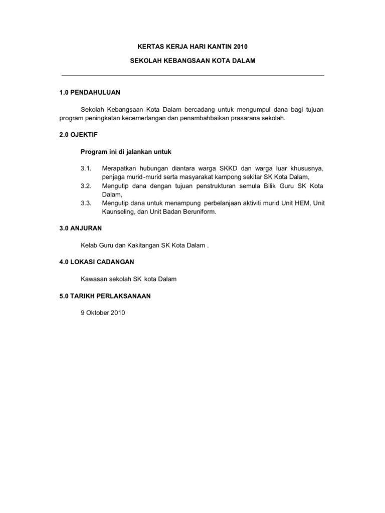 Kertas Kerja Hari Kantin 2010 Sekolah Kebangsaan Kota Dalam