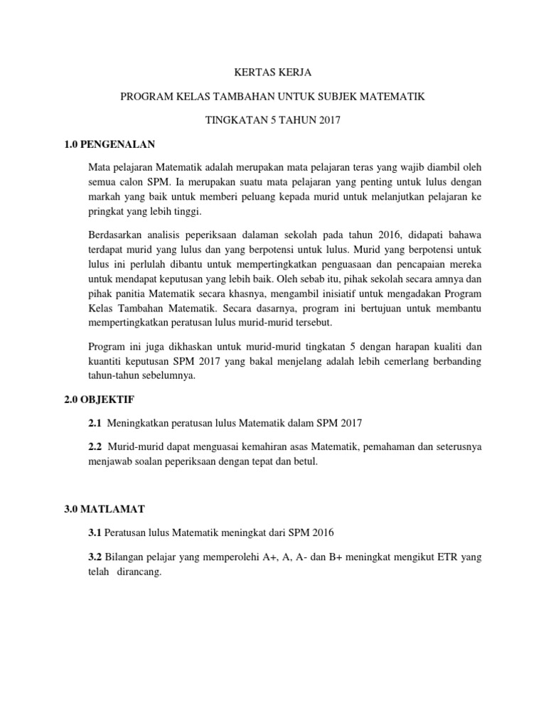 Doc 4 Kertas Kerja Program Kelas Tambahan Ert 2017 Doc Ku Mahani Academia Edu