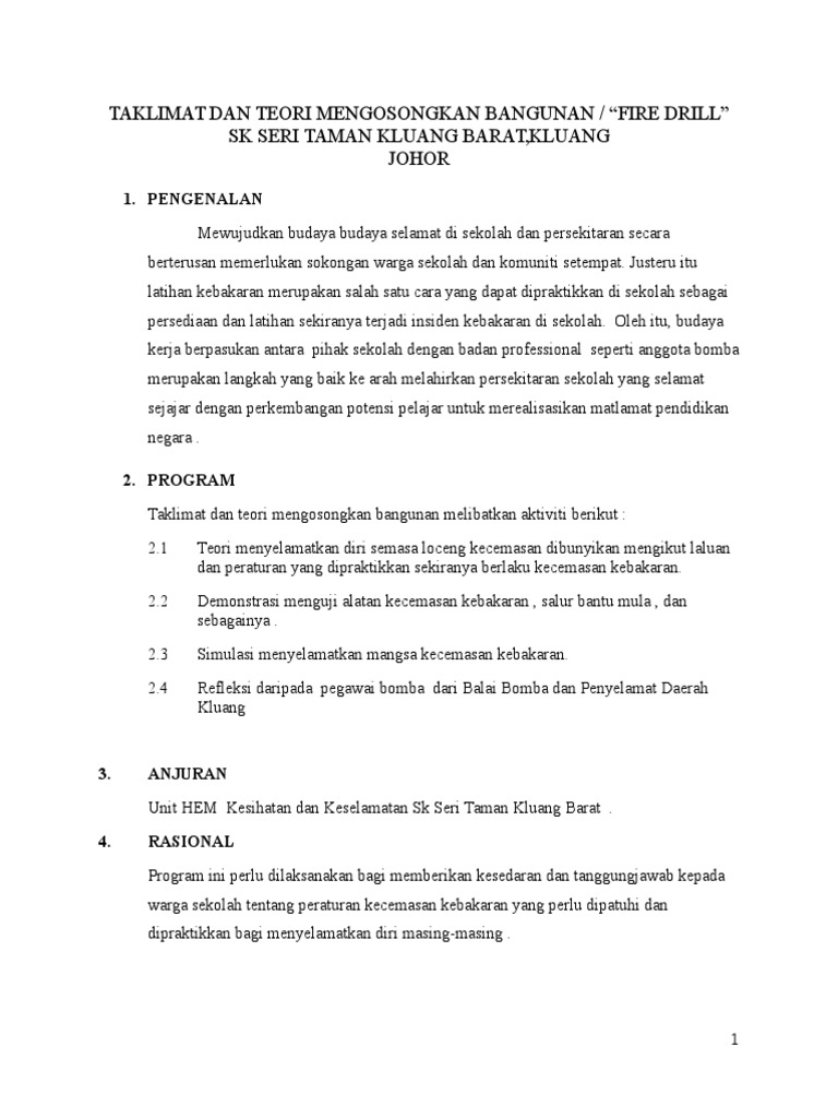 Kertas Kerja Latihan Kebakaran Fire Drill 1 Pages 1 12 Text Version Anyflip