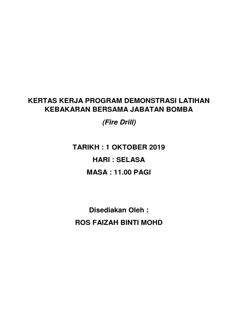 Kertas Kerja Latihan Kebakaran Fire Drill 1