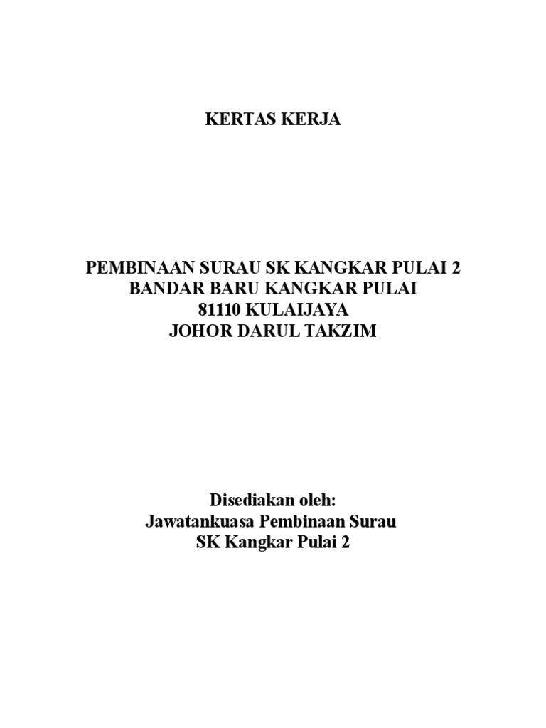 Kertas Kerja Penambahbaikan Surau Sekolah Doc