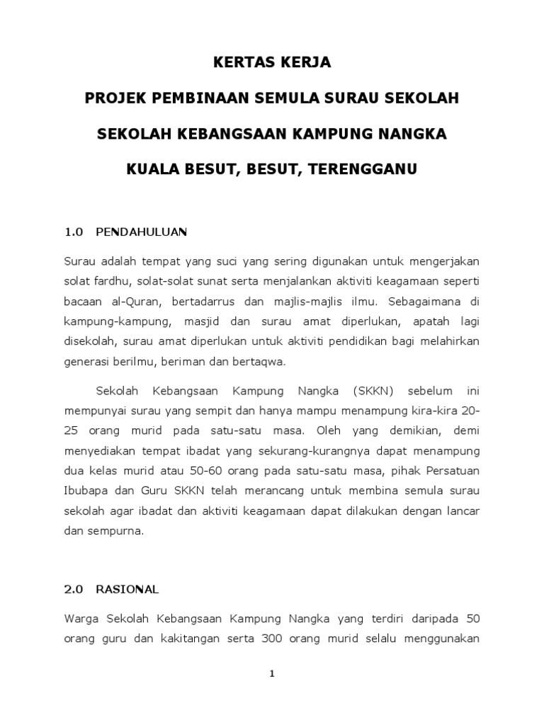 Kertas Kerja Pembinaan Surau Sekolah Doc