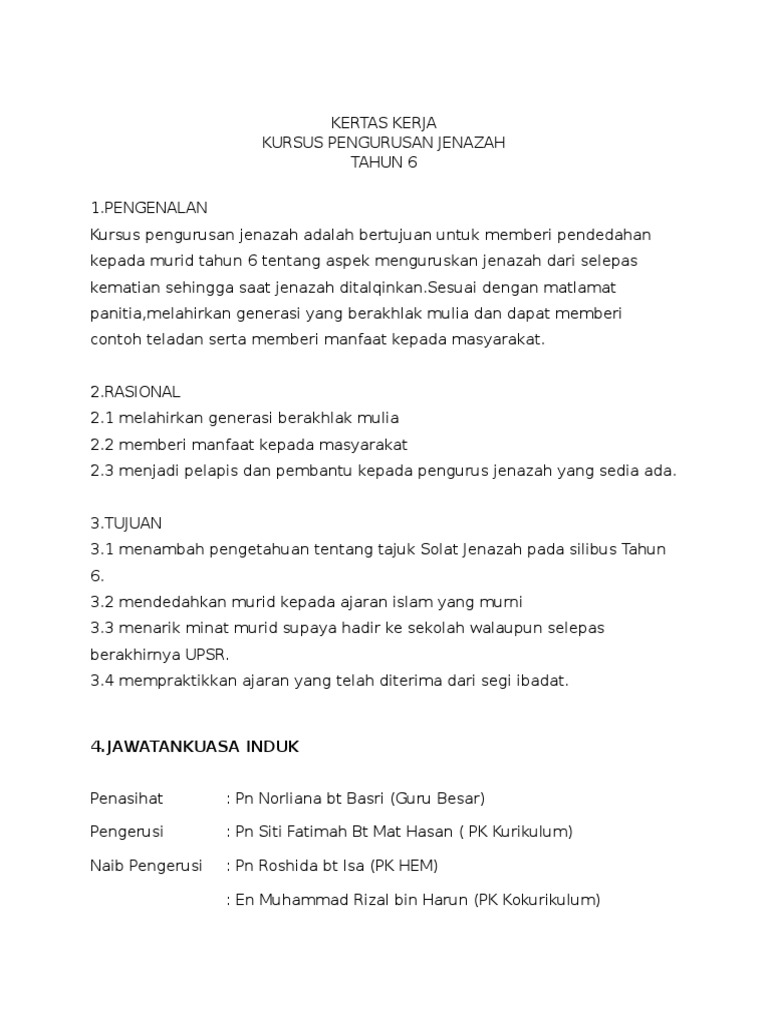 Kertas Kerja Kursus Pengurusan Jenazah Docx