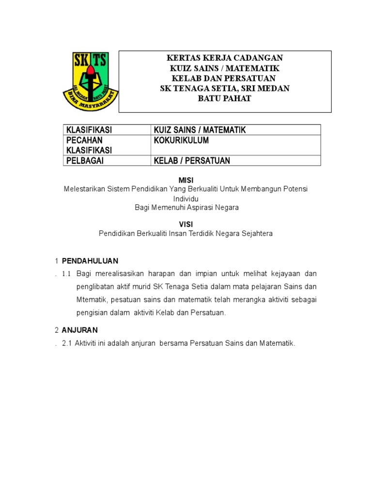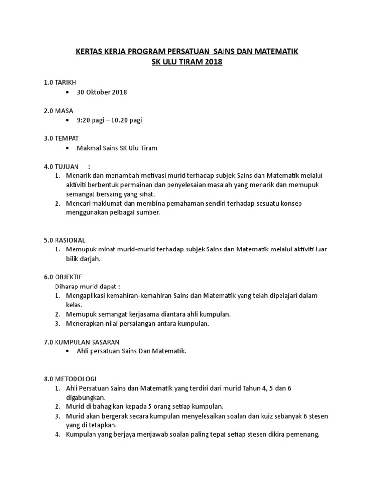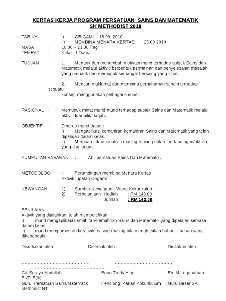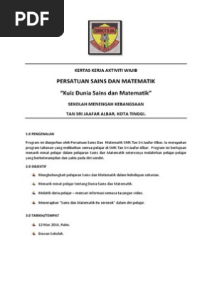 Kertas Kerja Program Persatuan Sains Dan Matematik Download Doc