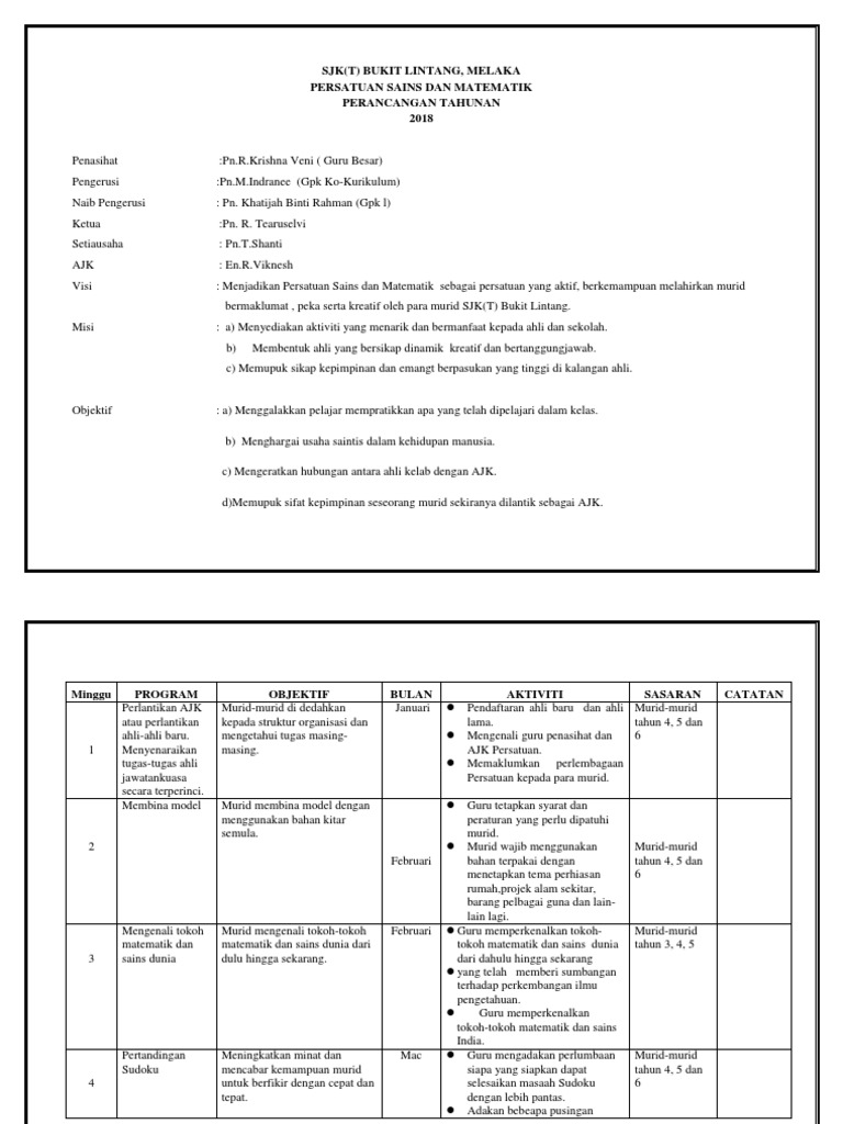 Rancangan Tahunan Persatuan Sains Dan Matematik 2018