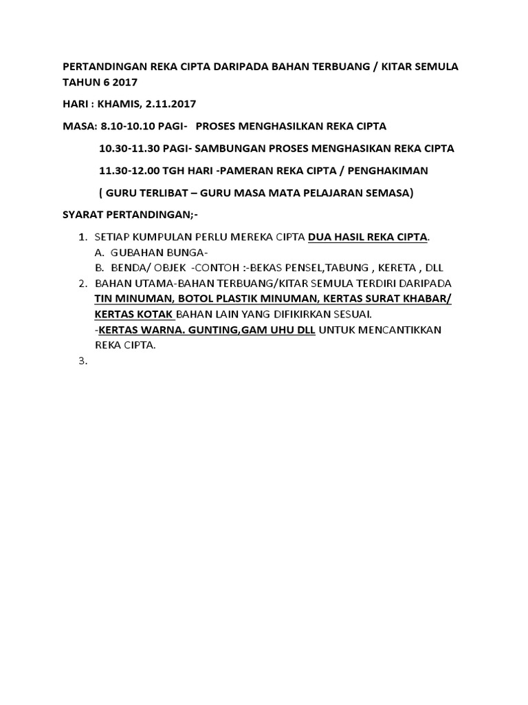 Contoh Kertas Kerja Pertandingan Gubahan Dan Rekacipta Docx Document