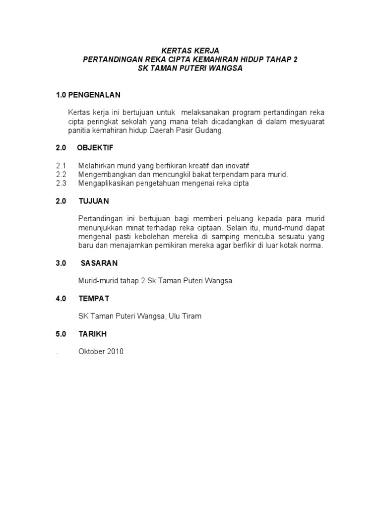 Contoh Kertas Kerja Pertandingan Gubahan Dan Rekacipta