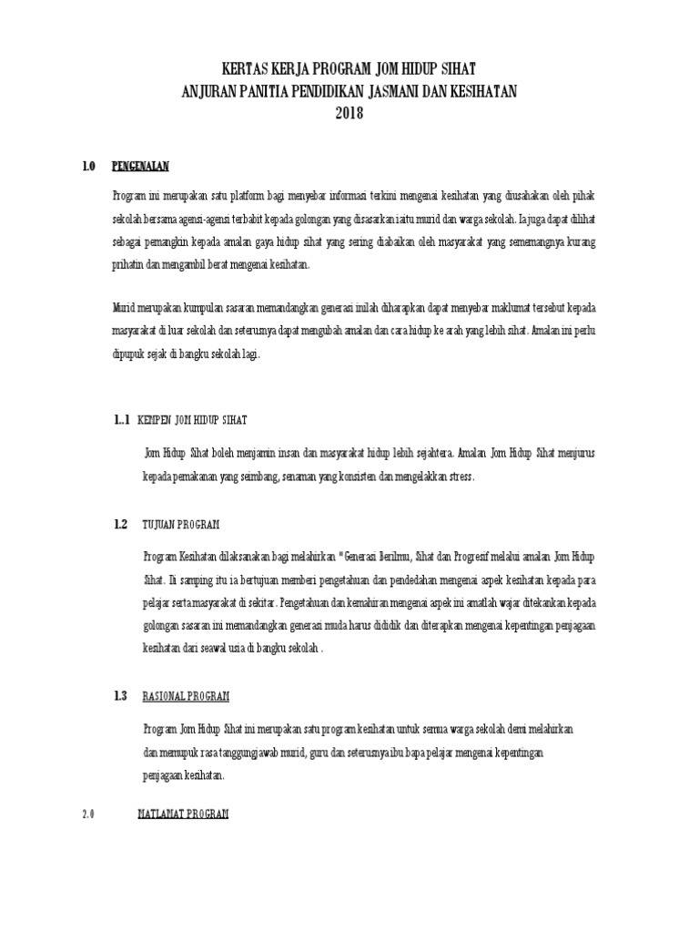 Kertas Kerja Program Gaya Hidup Sihat Elektif Terbuka Doc
