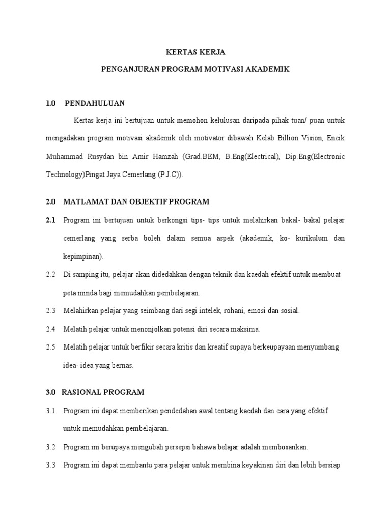 Doc Kertas Kerja Program Suntikan Motivasi Tingkatan 2 Hingga 5 Sekolah Menengah Kebangsaan Panji 2006 Aizuddin Dien Academia Edu