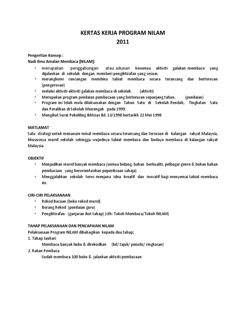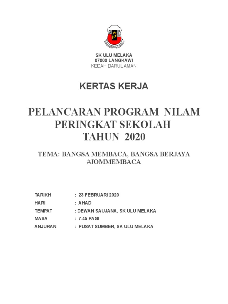 Kertas Kerja Pelancaran Nilam 2020 Pages 1 6 Text Version Anyflip