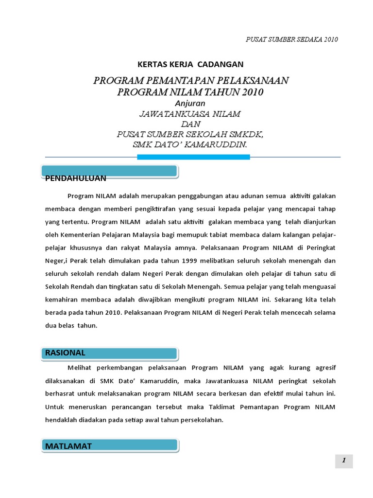 Kertas Kerja Cadangan Kempen Banyak Membaca Nilam