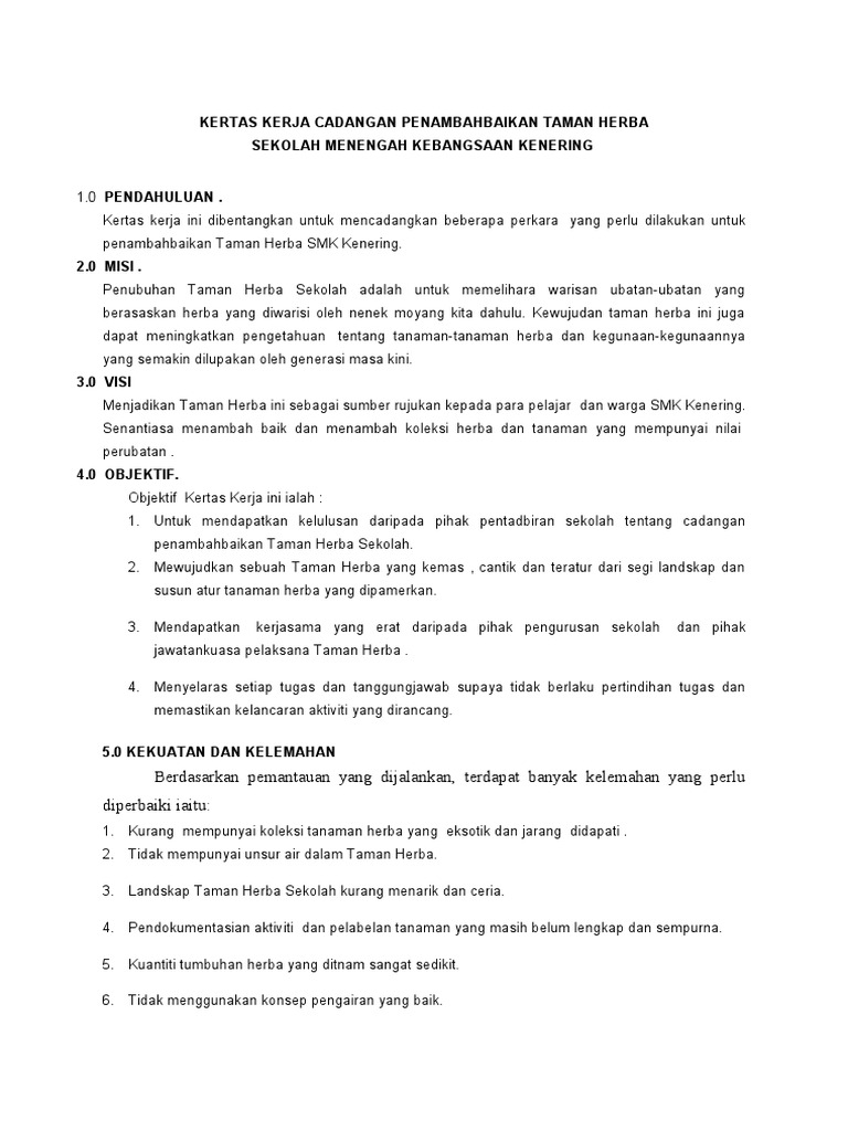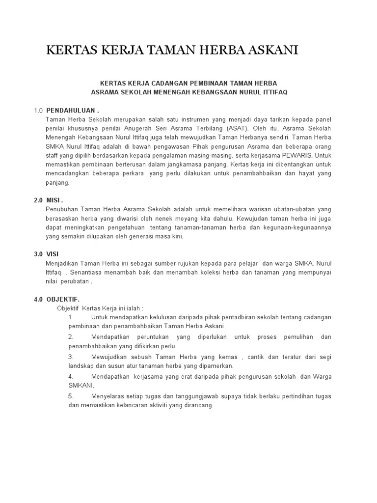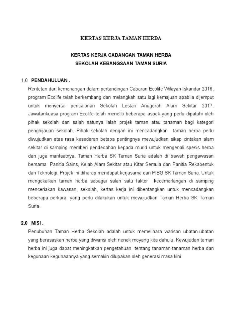Kertas Kerja Taman Herba Baru Doc Document