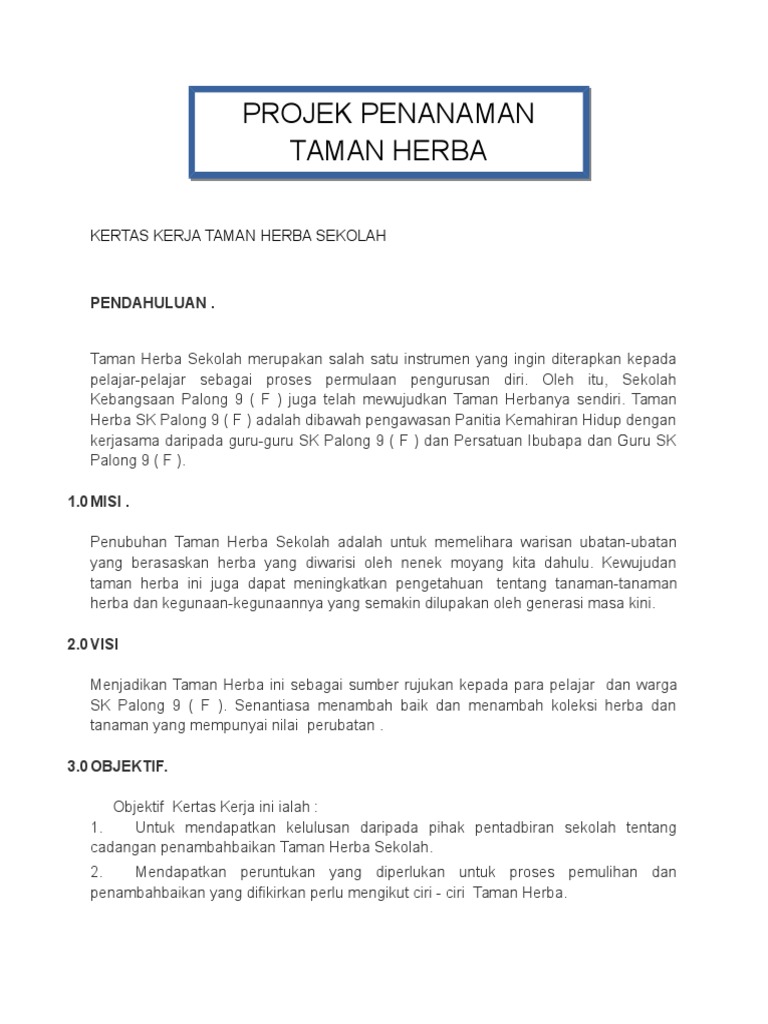 Kertas Kerja Taman Herba Sekolah