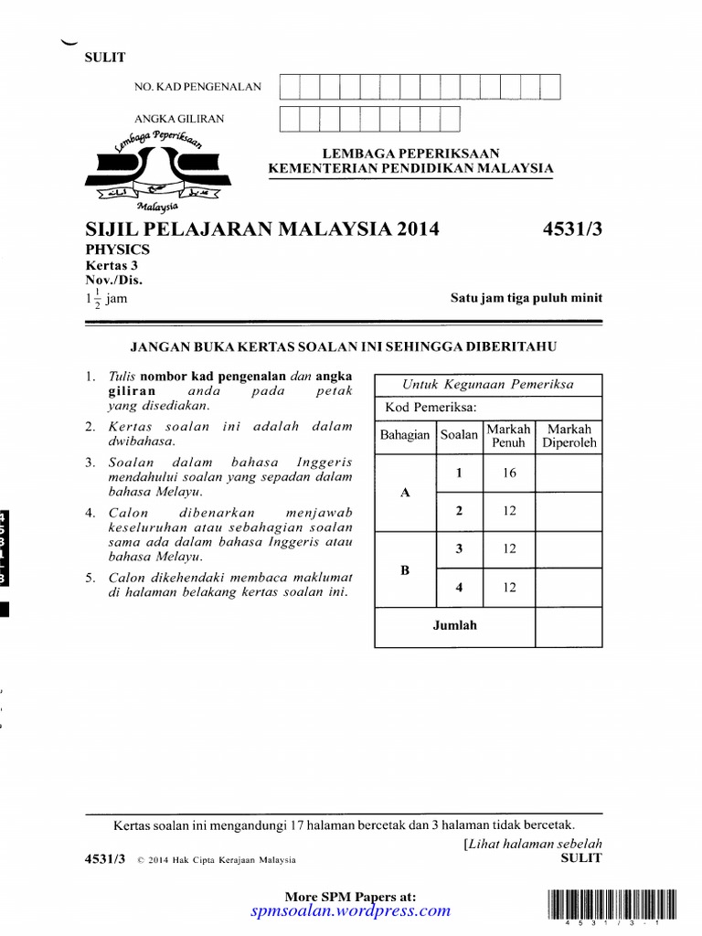 Soalan Spm Fizik Dan Skema Jawapan Viral Blog M