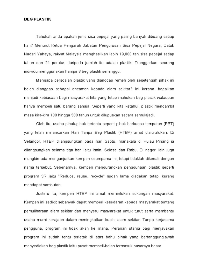 Doc Bahaya Penggunaan Beg Plastik Kesedaran Masyarakat Tahap Kritikal Suzana Yusof Academia Edu