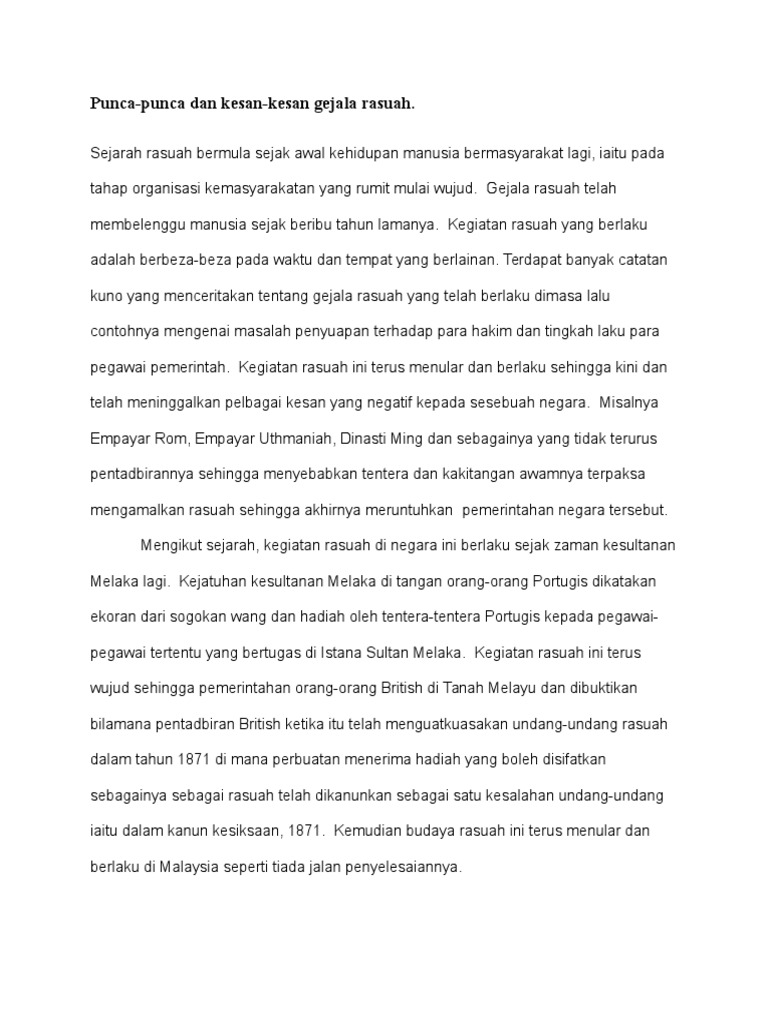 Gejala Rasuah Maksud Punca Kesan Negatif Dan Cara Menanganinya