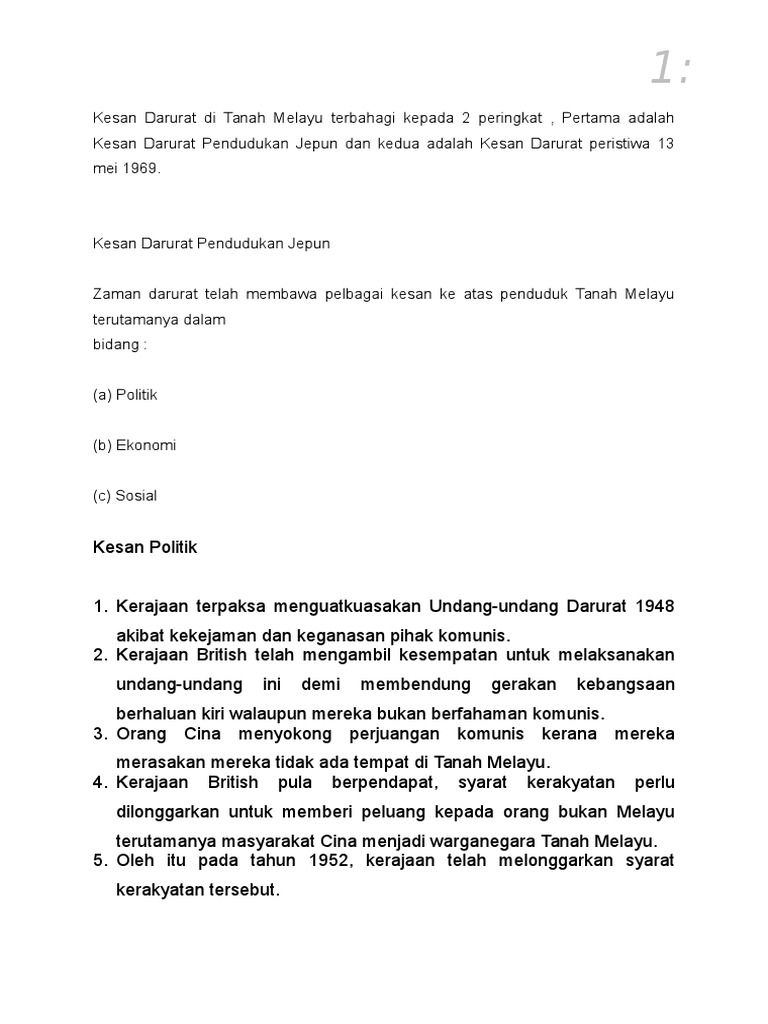 Kesan Kesan Undang Undang Darurat 1948 Sejarah Stpm Penggal 3