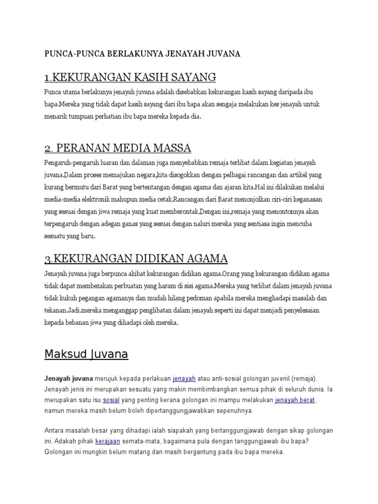 Punca Punca Berlakunya Jenayah Juvana