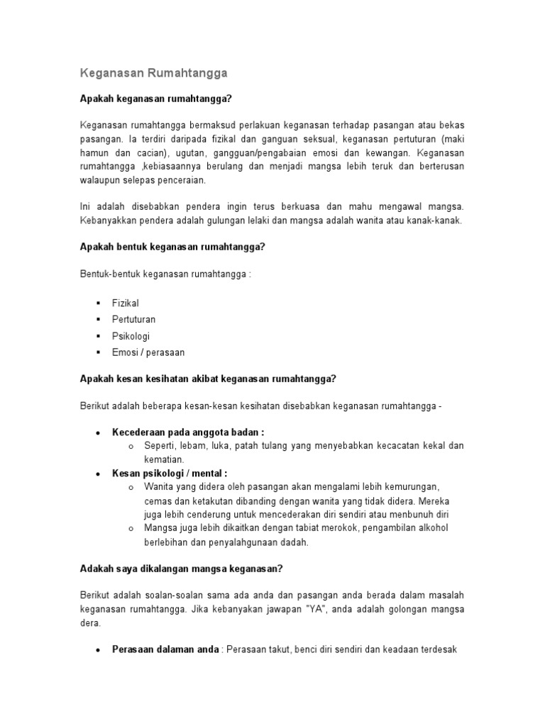 Keganasan Rumah Tangga Kesan Psikologi Mangsa