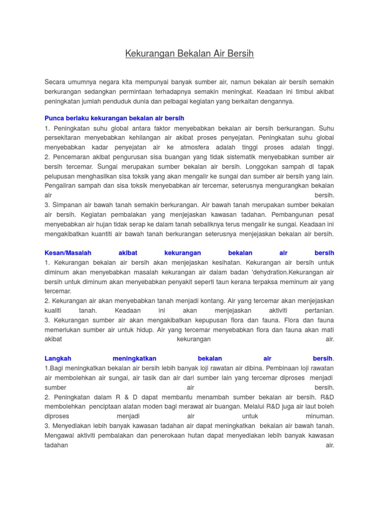 Bahasa Itu Indah Isu Alam Sekitar Kekurangan Bekalan Air Bersih Bukan Isu Remeh