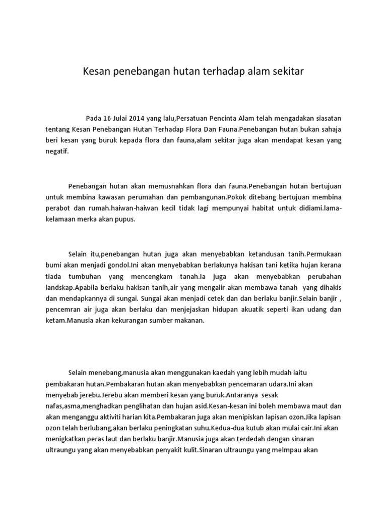 Kesan Kemusnahan Hutan Terhadap Alam Sekitar Fizikal