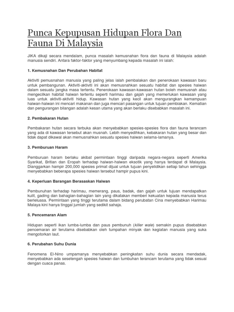 Punca Kepupusan Hidupan Flora Dan Fauna Di Malaysia