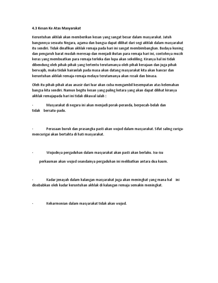Jatuh bangunnya sesuatu negara agama dan bangsa dapat dilihat dari segi akhlak dalam masyarakat itu sendiri. Kesan terhadap keruntuhan akhlak free download as word doc doc docx pdf file pdf text file txt or read online for free. Malangnya keruntuhan akhlak dan moral remaja semakin menjadi jadi marcapada ini. Keruntuhan akhlak bermaksud pelbagai perlakuan negatif anggota masyarakat yang tidak membawa sokongan dan keuntungan kepada kekuatan sistem dan struktur ekonomi yang diamalkan dalam sesuatu masyarakat ataupun negara.