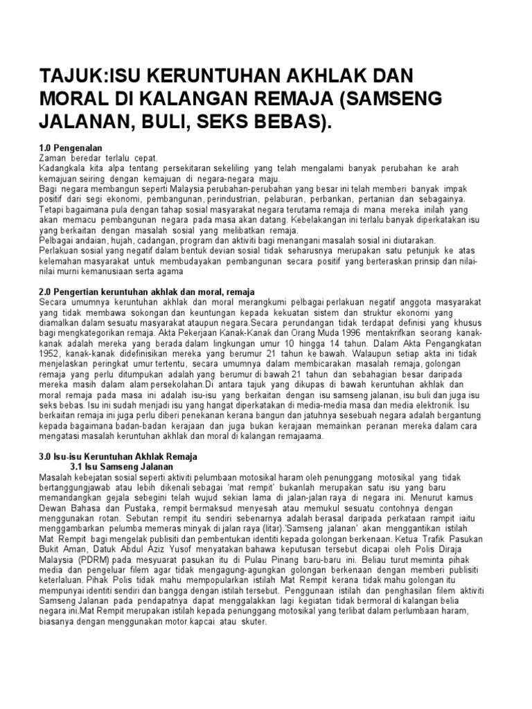 Tidak dinafikan akhlak remaja pada hari ini sangat membimbangkan. 2018 e issn 0128 0899 55 menangani keruntuhan akhlak masa kini menurut islam nasarudin desa man1 tengku intan zarina tengku puji2 sabri mohamad3 email. 4 0 keruntuhan akhlak 4. Oleh itu golongan remaja yang cemerlang sangat diperlukan untuk membentuk sesebuah negara yang berjaya.