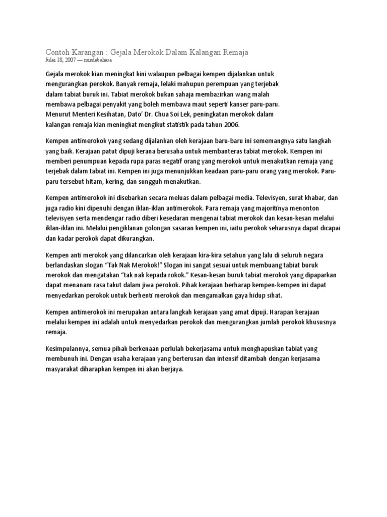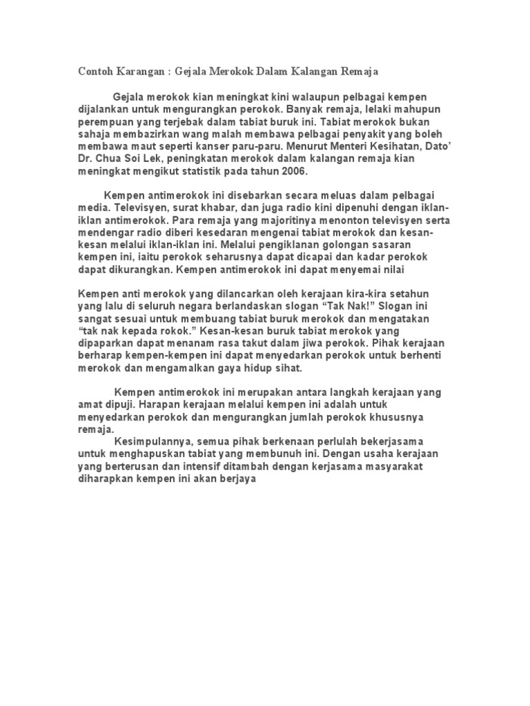 Contoh Karangan Gejala Merokok Dalam Kalangan Remaja